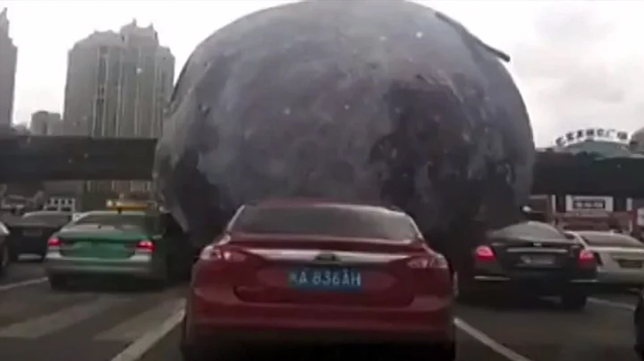 Giant Moon Balloon Lands on a Busy Road in China