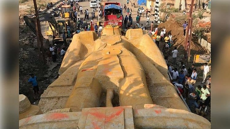 Road Destroyed & Traffic Stalled, All For a Massive Hanuman Statue