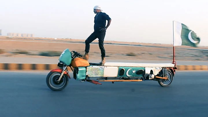 Pakistani Cop Performs Stunts on Self-Made 16-Foot Long Bike