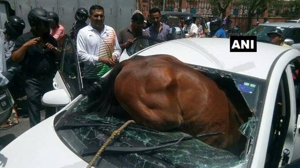 Horse Ends Up Inside Car In Shocking Collision in Jaipur