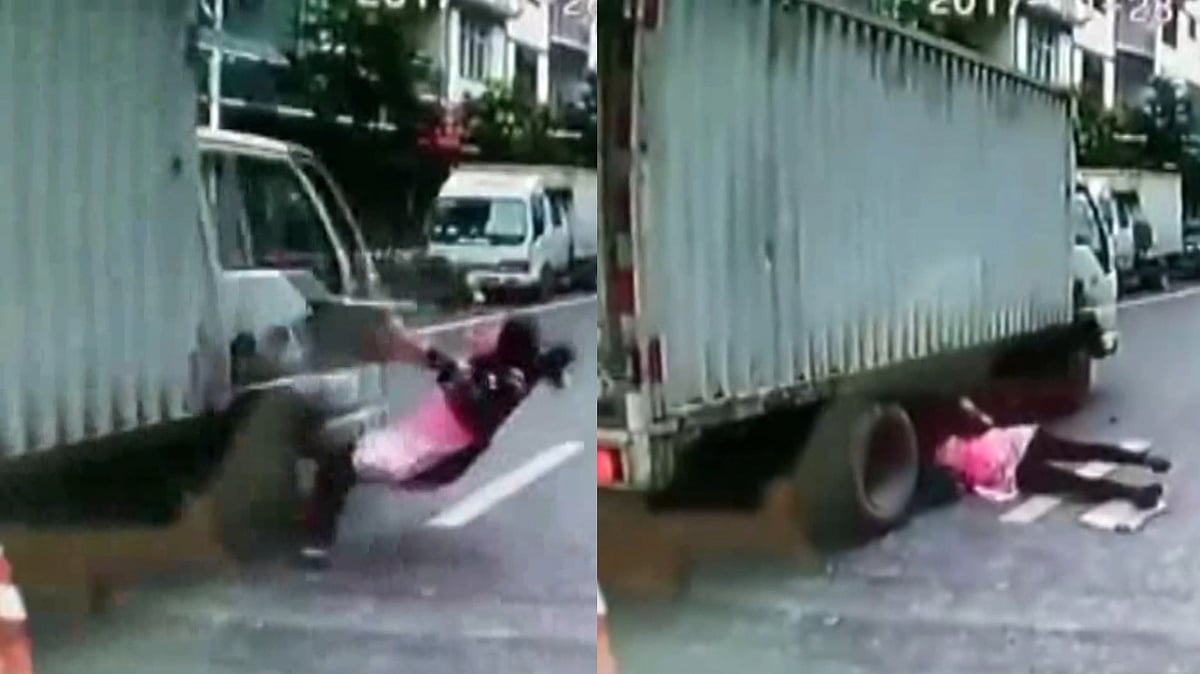 Woman in China Comes Under a Truck, Miraculously Escapes