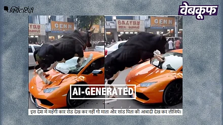 लग्जरी कार पर गाय के हमले का यह वीडियो AI की मदद से बना है