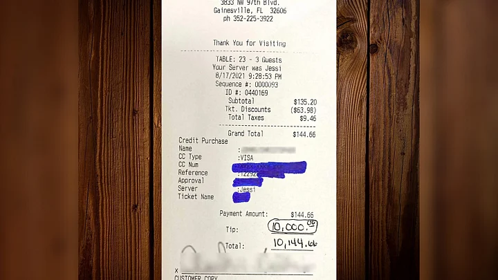Florida: Mystery Man Leaves $10,000 Tip for Restaurant Staff