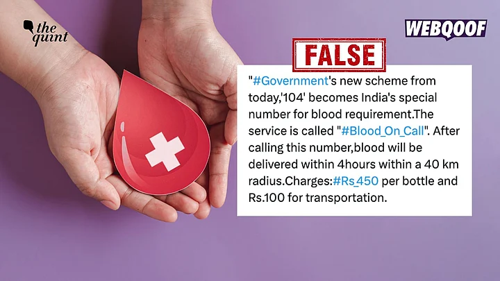 False Claim About Calling 104 for Government’s ‘Blood-On-Call’ Service Revived