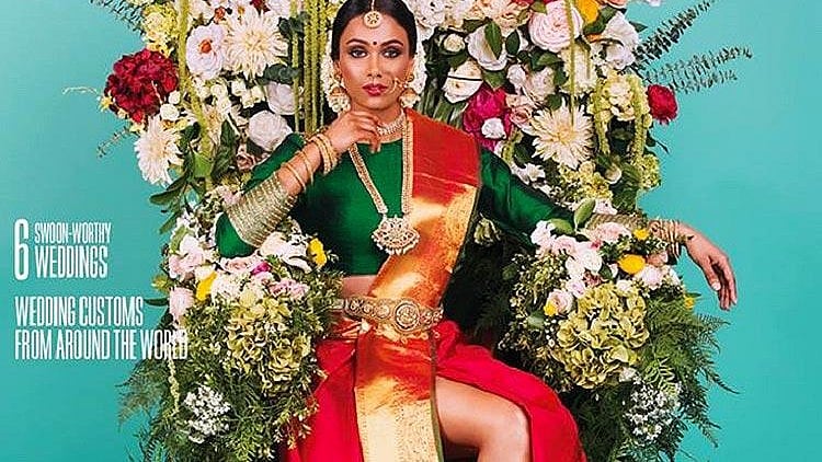 Mag Cover Featuring Tamil Bride Wearing Saree With Slit Sparks Row