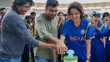 Anushka Sharma Cuts Cake as She Wraps 'Chakda Xpress' Shoot