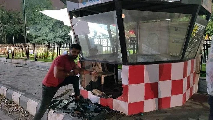 Man Poses For Photo After Crashing Lamborghini Into Police Kiosk
