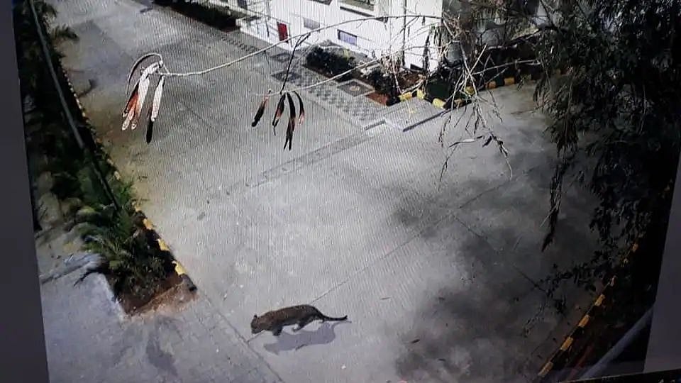 Leopard Strolling Outside Thane Mall Caught From Hotel Basement