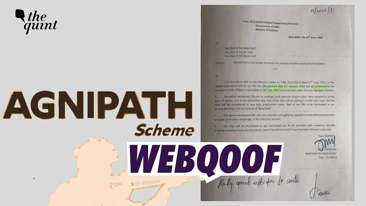 This Letter From Ministry of Defence on Agnipath Scheme is Fake