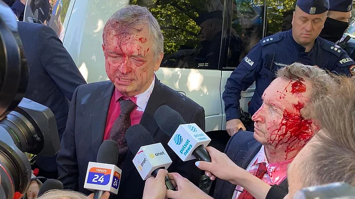 Russian Ambassador to Poland Attacked With Red Paint by Anti-War Protesters