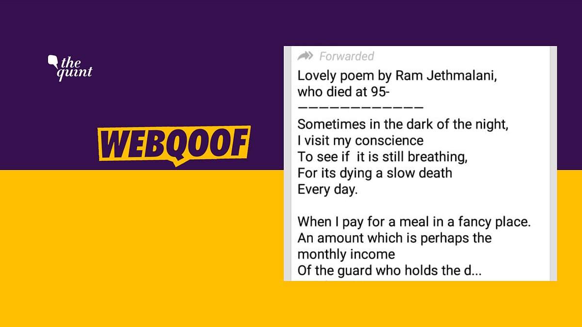 No, Ram Jethmalani Did Not Pen This Poem, It’s Wrongly Attributed