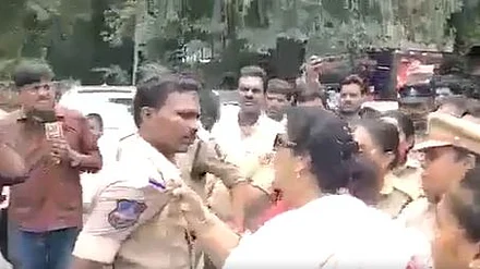 Renuka Chowdhury Grabs Cop's Collar Amid Cong Protest Over ED Summons, FIR Filed