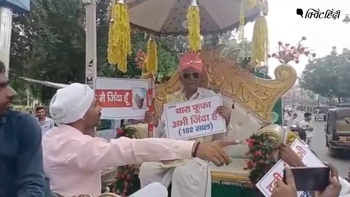 मृत बताकर रोकी पेंशन, 102 साल के बुजुर्ग ने जुलूस निकालकर कहा-थारा फूफा जिंदा है