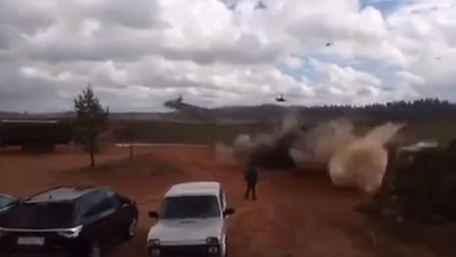 2 Injured as Russian Military Chopper Accidentally Fires at Crowd