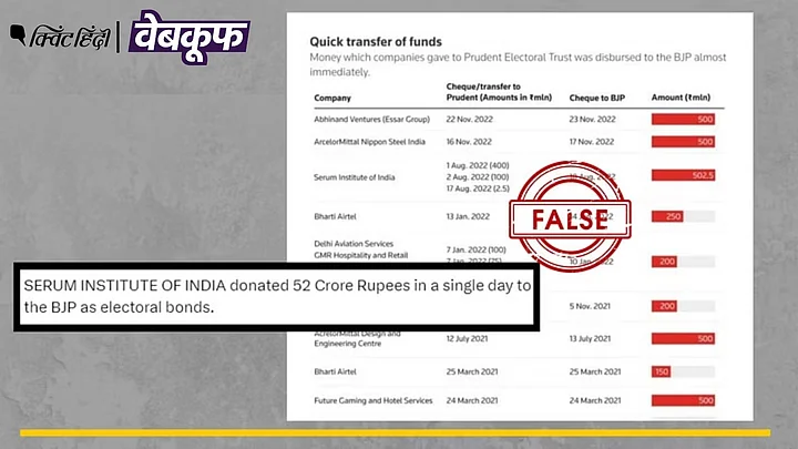 BJP को सीरम इंस्टीट्यूट से मिले चंदे का बताकर वायरल ग्राफिक का सच