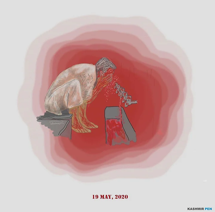 Khursheed Mushtaq Ali was born on a curfew night in the year 1993. At the time, Kashmir was going through one of the worst political turmoils. His work speaks of the distressing times he witnessed back home and how the haunting shadows of the conflict creep into his artwork.