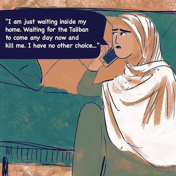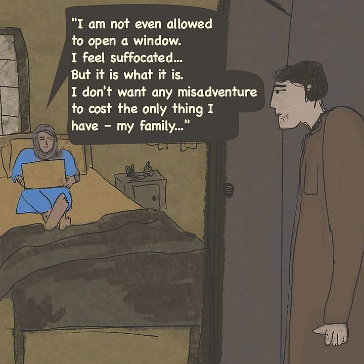 But today, she is locked inside a room. She's not even allowed to open a window. Only her mother is allowed to enter the room. Her family fears that she, an unmarried woman, would be subjected to horrors by the Taliban, like last time.