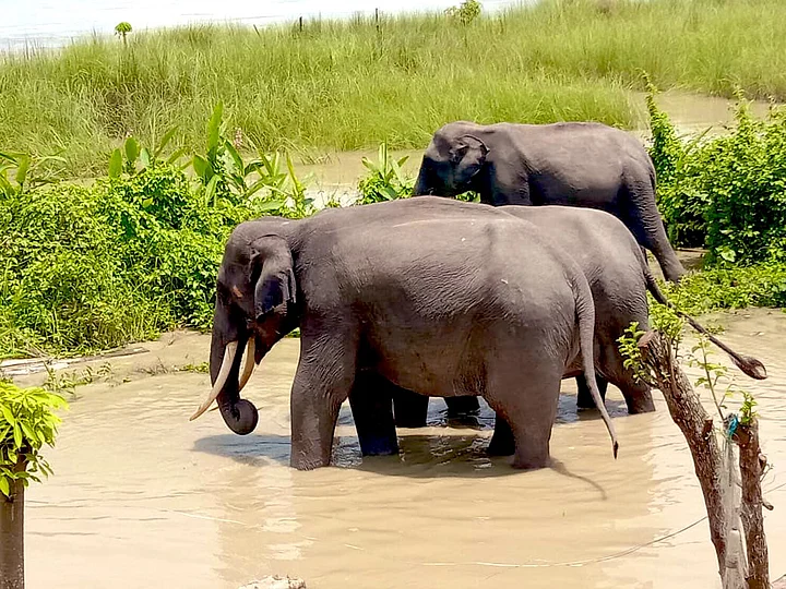 Several animals – elephants, deer, tigers, rhinos – were spotted trying to escape the flood. Many elephants, rhinos and deer were spotted at the national highway near the Kaziranga National Park, trying to escape to higher lands.
