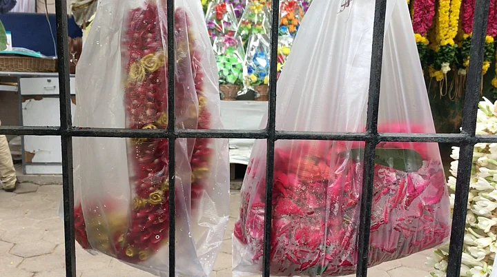 Women who hawk flowers in Mylapore and T Nagar said they tried to switch to leaves and paper bags for packaging but, “Only if you keep the roses and jasmine flowers in transparent plastic covers will customers see and buy them... If they’re not visible from outside, people won’t buy them,” said Meena.