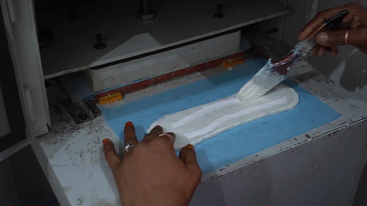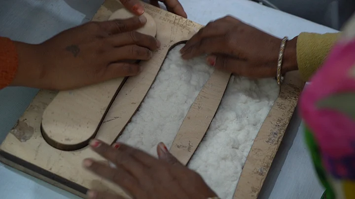 Rakhi, a factory employee who manages the unit in Kathikhera, said that they pull extra hours on Sundays if they fail to achieve their target of manufacturing 600 pads per day.