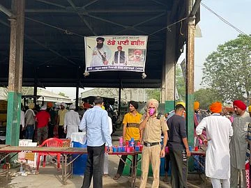 Images from the district's Baharli Anaj Mandi captured people setting up stalls to sell posters, serving water, and organising langar for the attendees amid elaborate security arrangements.