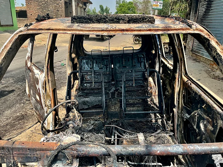“They vandalised my house, beat me up and then brought the car from the garage and set it on fire. I had bought the car in 2020. In just minutes, I lost over four lakh rupees. When the mob entered the house, I hid my children in the washroom.” When this reporter visited Ali’s house, the floor was covered with broken glass and drops of blood.