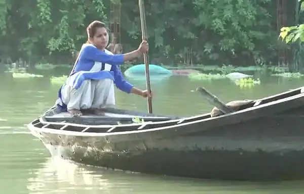 Sandhya rides her boat to reach school