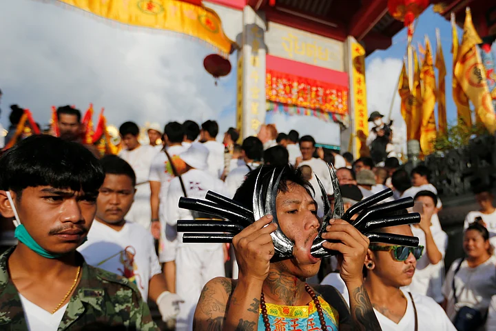 The festival was first celebrated 150 years ago in Thailand’s Kathu district. The tradition was brought into Thailand by the Chinese mine workers after beating an epidemic with the help of ‘Chinese Gods’.