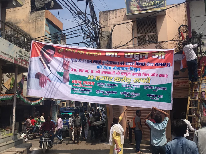 - 03/03Hoarding being put in place at Jhansi to welcome Rahul Gandhi. (Photo Courtesy: The Quint)