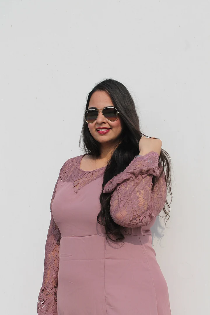 A well-structured, A-line dress in pastel shades with the right length and detailing can look polished. My ideal semi-formal look has to be this lavender solid A-line dress with feminine lace detailing and bell-bottom sleeves with a structured silhouette. The dress when paired with the right kind of heels and a matching satchel bag is the perfect dress you need to attend that semi-formal office party.