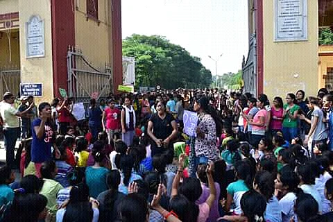 The minute the girl reached her hostel, girls in her hostel were just as shocked by the authorities’ reaction as was the victim. They decided to stage a protest outside the VC’s office immediately.