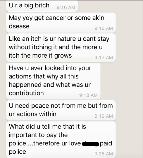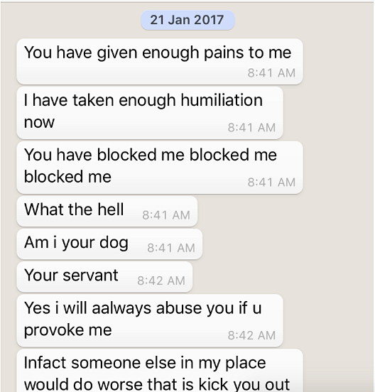 In the middle of 2016, Varun started contacting Anamika again. Her phone was flooded with texts and calls about men she was hanging out with, something about a court case and general harassment. Every time she would block his number, he would contact her from another number. Little did she know he had started tracking her call details.
