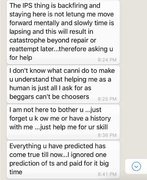 The emails and messages increased in frequency and feverishness. “This went on for months until April-May 2017. He reached out everyday in a different mood. Then it suddenly stopped for a few months.”